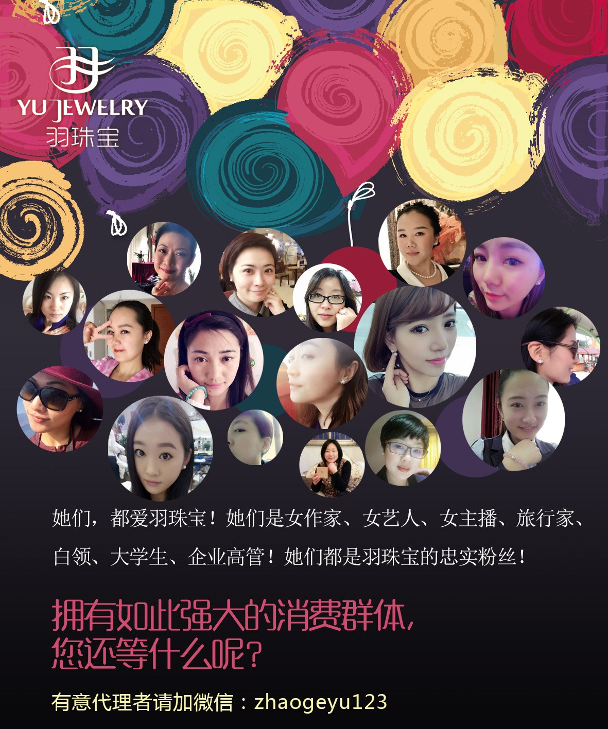 【羽珠宝公告】自从4月2日羽珠宝面向全国招收代理以来,羽珠宝深受欢迎,代理队伍迅速壮大(来自全国各地甚至美国的代理加入,且均为白富美或者女精英,行业涉及大学老师、生意人、医生、白领、大学生等)。为了完善服务,品牌升级,保证现有代理的权益,羽珠宝将于2015年4月15日提高代理门槛。敬请转告。