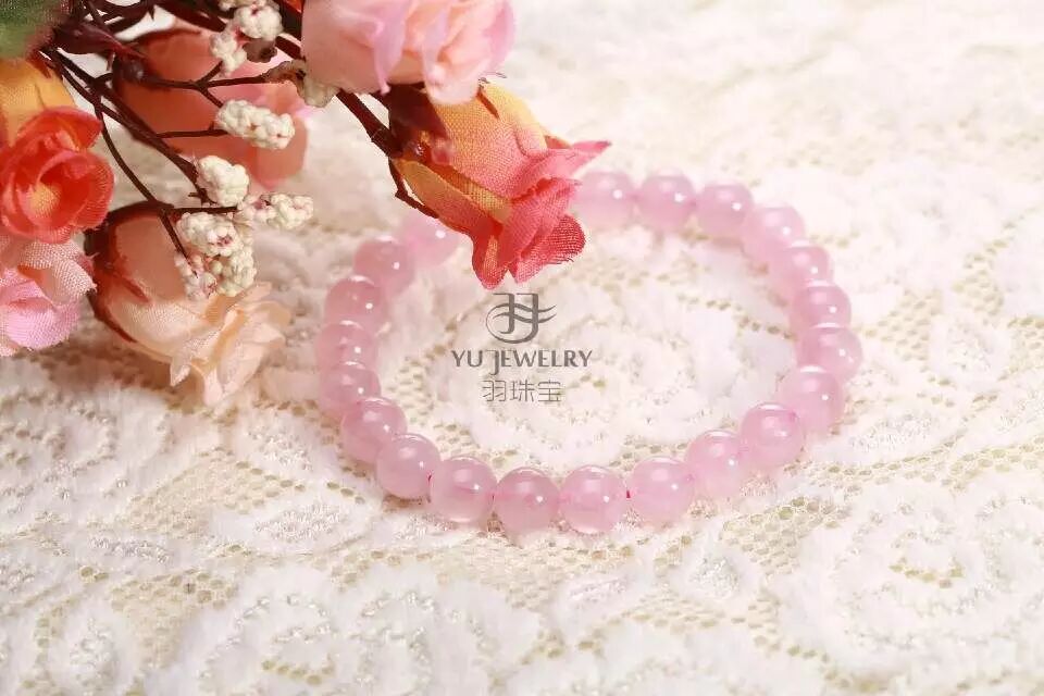 (羽珠宝爱情女王马达加斯加粉晶手链)