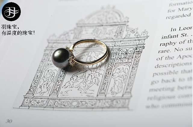 (羽珠宝高级定制14K简爱南洋黑珠戒指)
