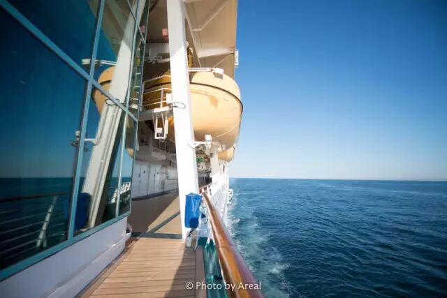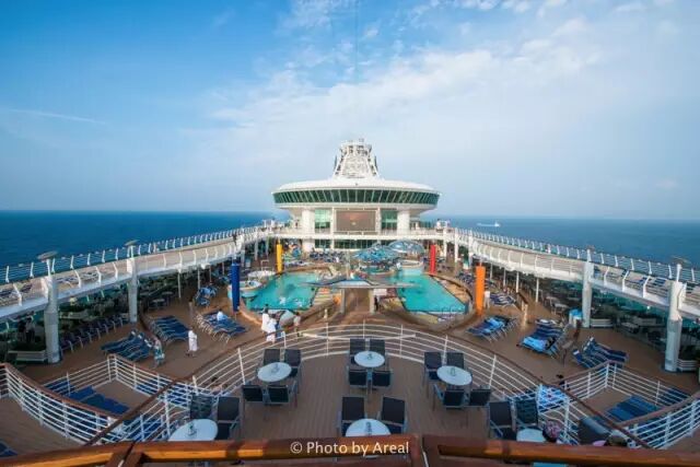 *邮轮娱乐及餐饮设施齐备。泳池、健身、攀岩、剧院、音乐厅、赌场、自助餐厅、西餐厅……这样的邮轮尤其适合老人与小孩。