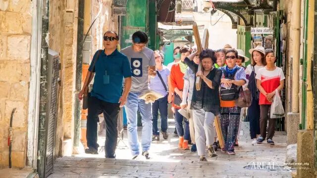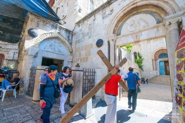 由世界各地而来的虔诚教徒们,有结伴而行的,轮流背负十字架,踏着耶稣曾经的脚印步步前行,曾经发生在耶稣身上的苦难似乎又一次真实地发生在自己身上。