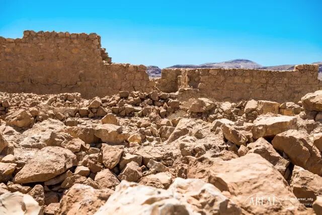 马萨达是一个地势险峻的天然堡垒,它威严地矗立在犹地亚沙漠中,俯瞰着死海。从山脚下乘坐缆车,湛蓝的死海越来越多在眼前出现,随之而来,越发接近位于300米山峰上的宫殿。它又是一座与希律王有关的奢华宫殿。