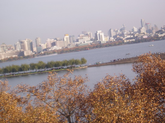 ▲远处断桥,从黄婷的房间窗户拍摄,眼睛往右一点就是断桥——看见吗?湖中间的一条带?白堤起始处?有很多人行走——看见吗?