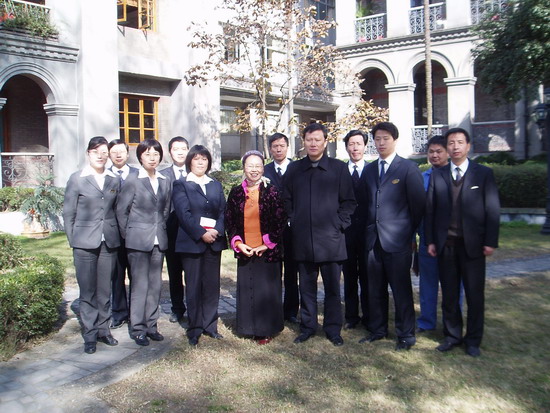 ▲这是今天上午新新饭店所有的管理层和黄婷一起交流座谈会的成员。是在中楼和孤云草舍之间。原意是想把中楼的背景影印下来的。