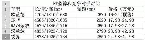 在这个细分市场,目前包括途观、CRV、奇骏等车型在内的都没有配备7座车型。欧蓝德将是该细分市场第一款配备7座的车型,这对目前正在大力开放二孩家庭的中国市场来说,无疑是最大的卖点,也是绝杀竞争对手的独特武器。