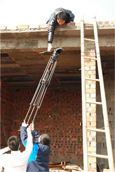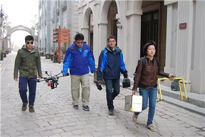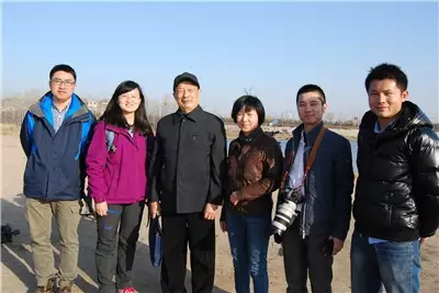 摄制组与台儿庄民间研究学者任世淦在沂河岸边合影