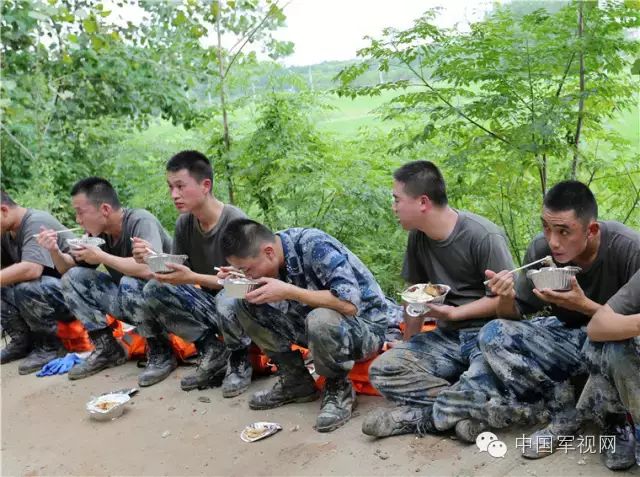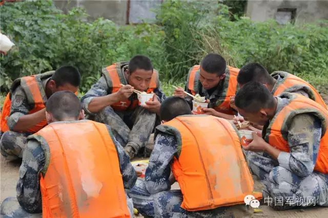 在抗洪一线,不管是馒头米饭还是方便面他们有什么就吃什么抓紧一切时间补充能量只为了再奋战时能多扛几次沙袋