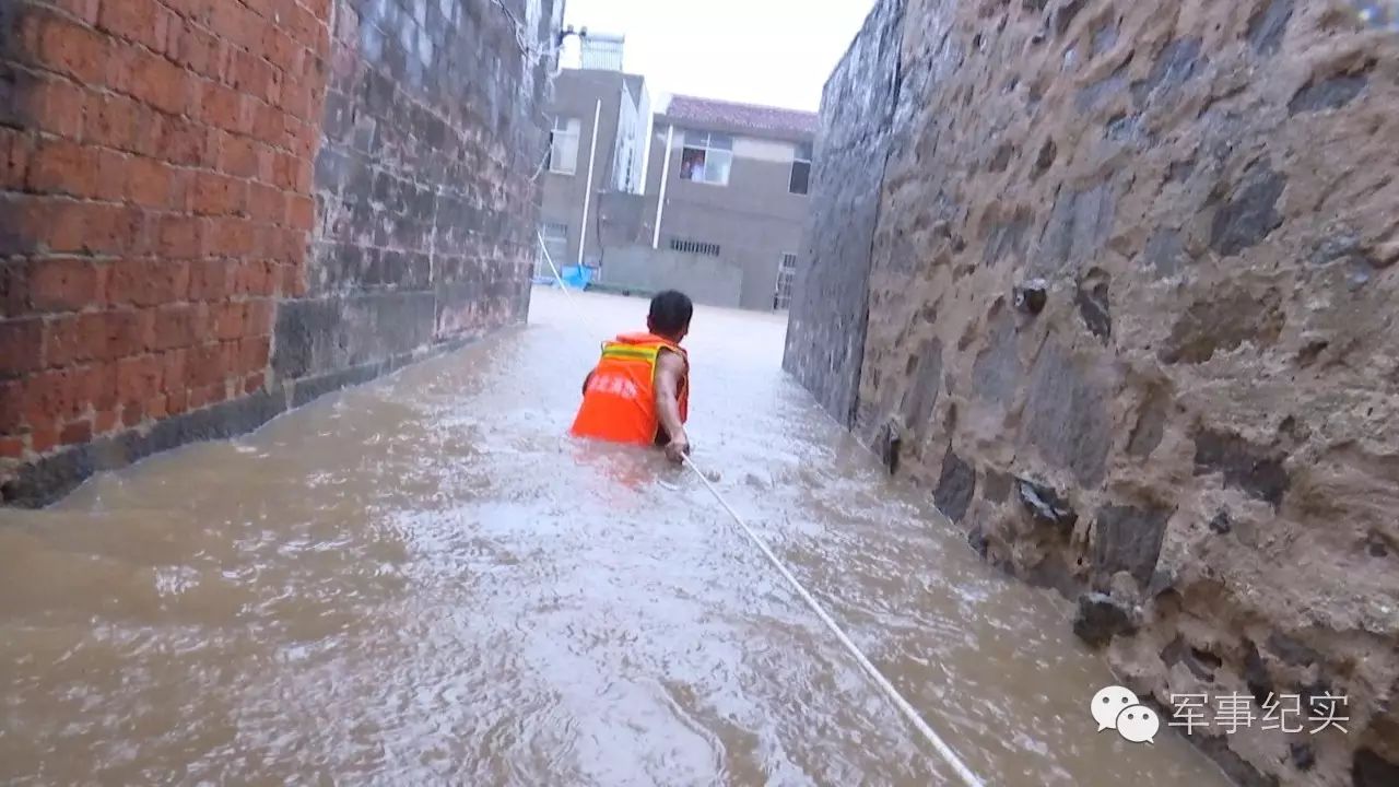 ▲从上午10点到下午四点,刘晓鹏在被淹了两米深的房屋中一家一家地搜救,用绳索拉起一条条“救命通道”。在这根细细的“空中绳索”上他往返12次,救出了六名被困群众,疏散40多户居民。