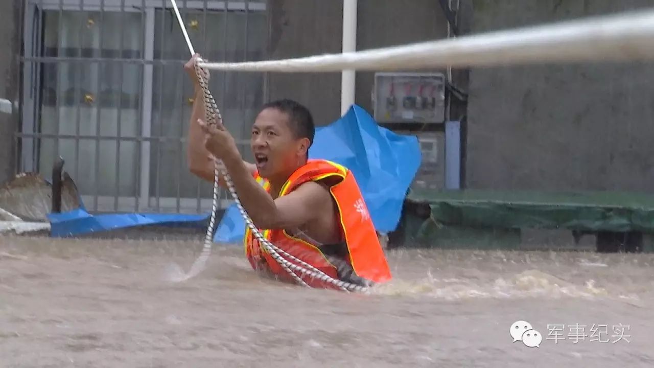 ▲水面上,不断传出他号子般的吼声。刘晓鹏说,看着眼前被困的群众,他不能放弃,于是大吼几声,给自己打气。这一刻,无比震撼人心!