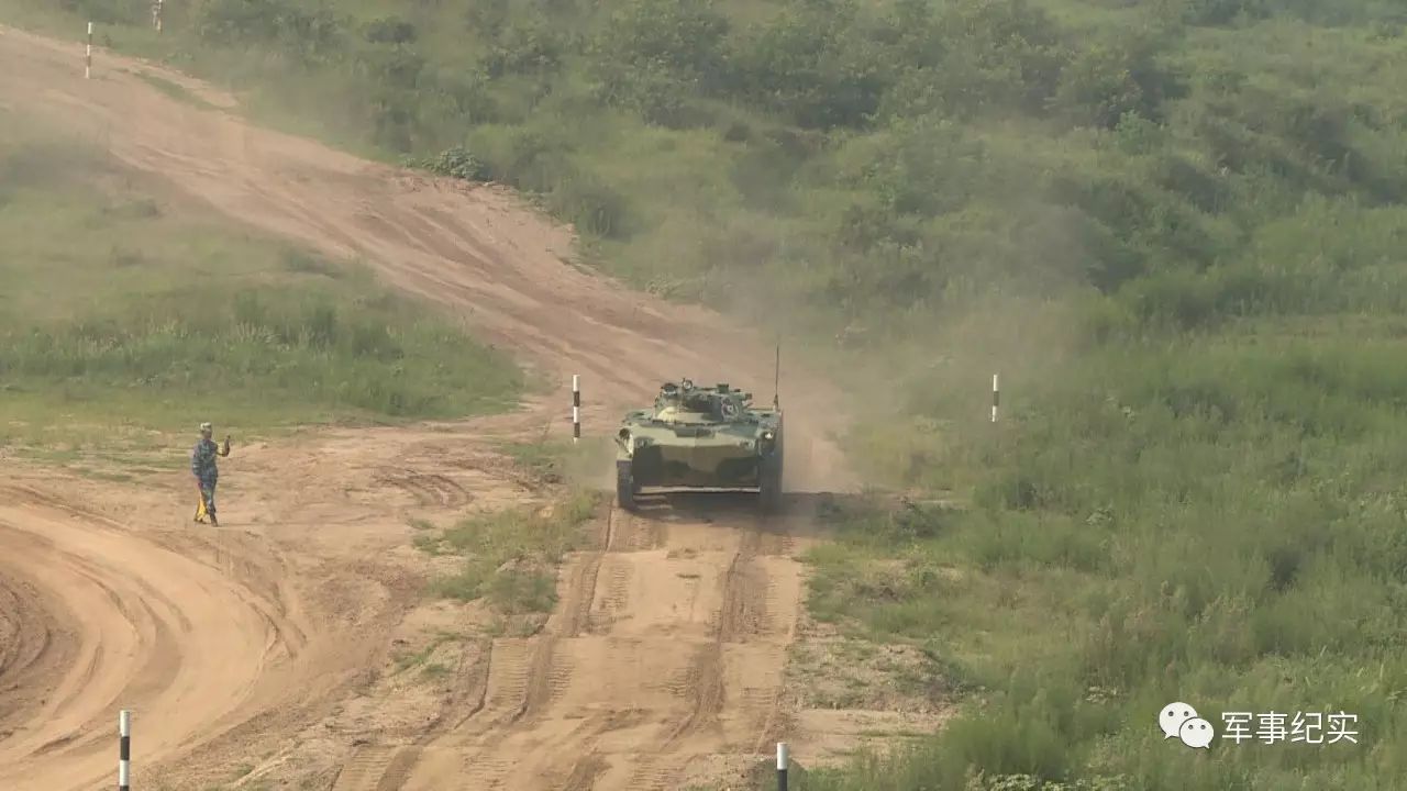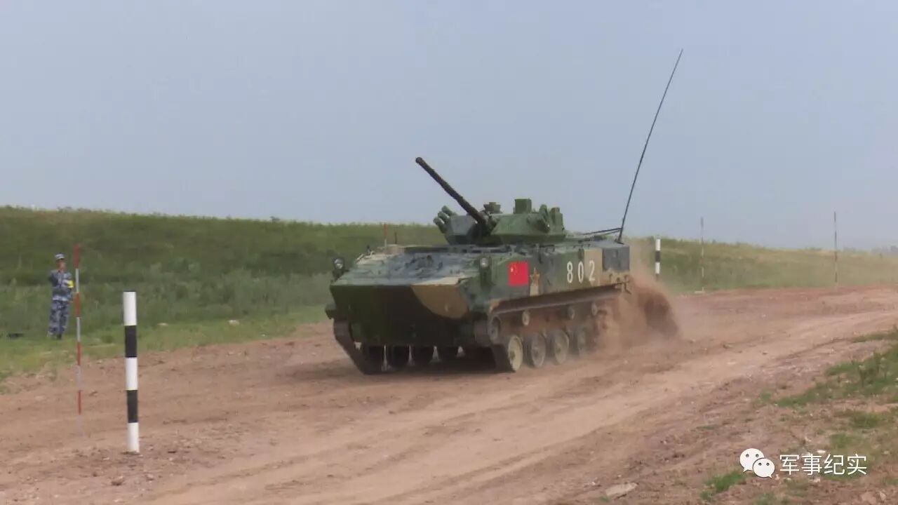 紧随801战车出发的是中国参赛队802车组。802车组一路飞驰进入射击阵地,完成射击项目。