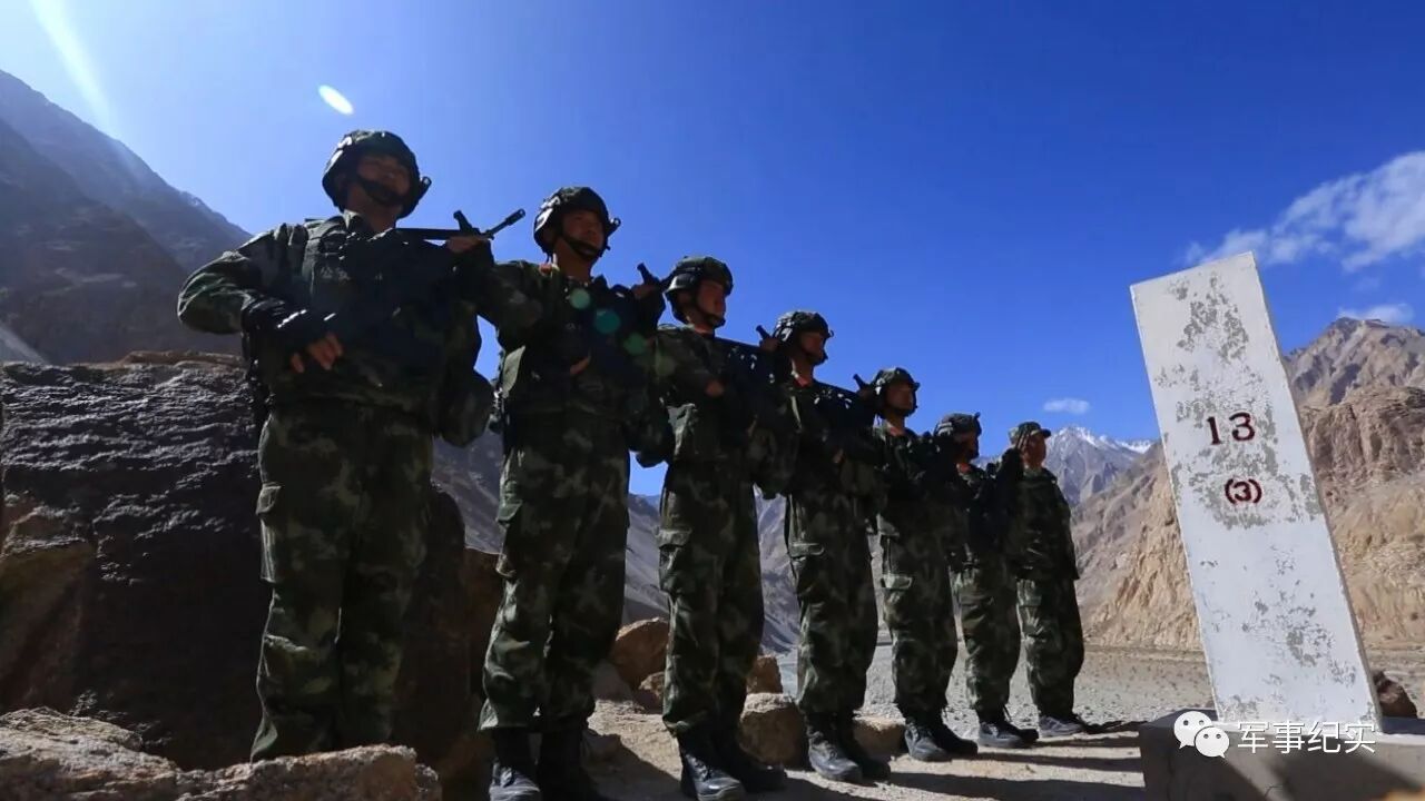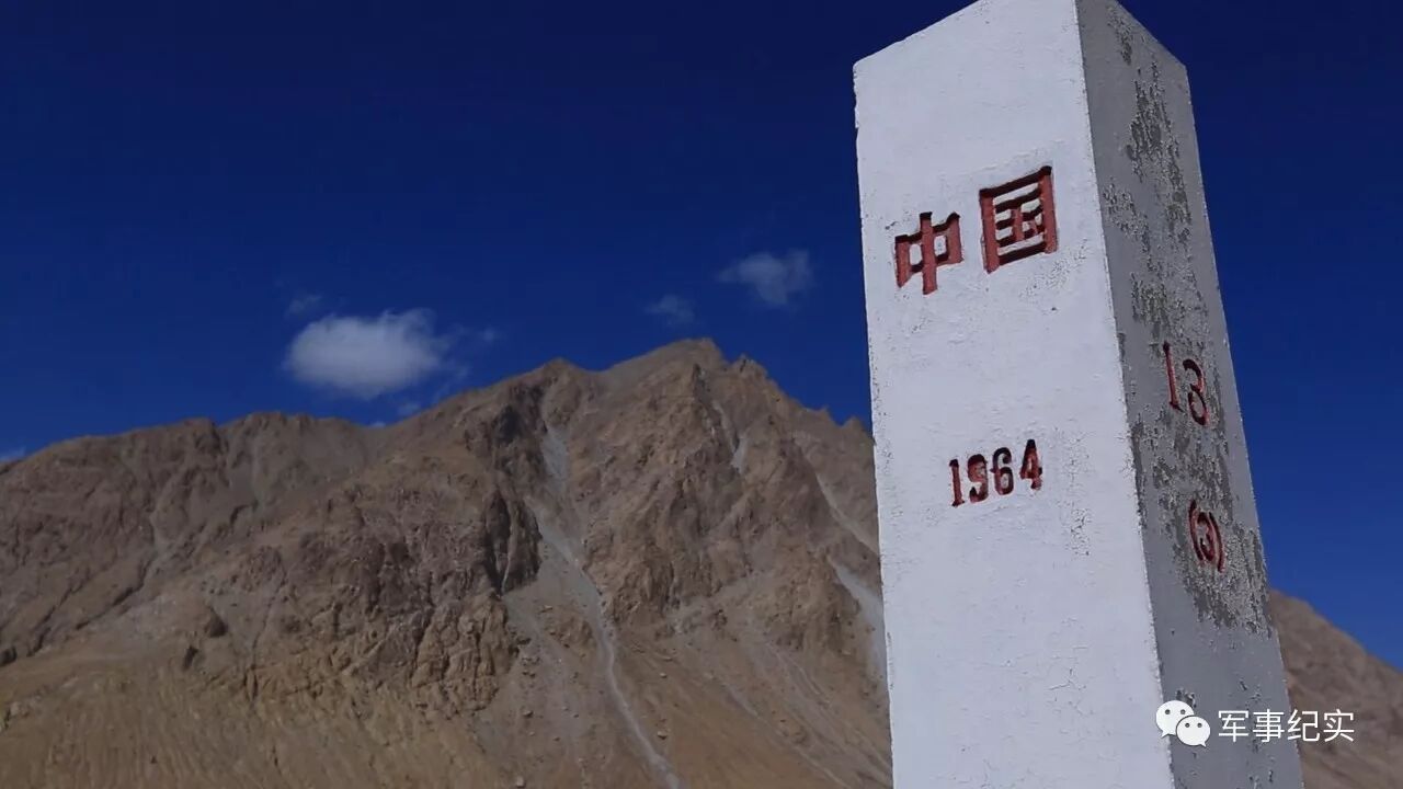 矗立在边境线上的是中国和巴基斯坦的13号界碑