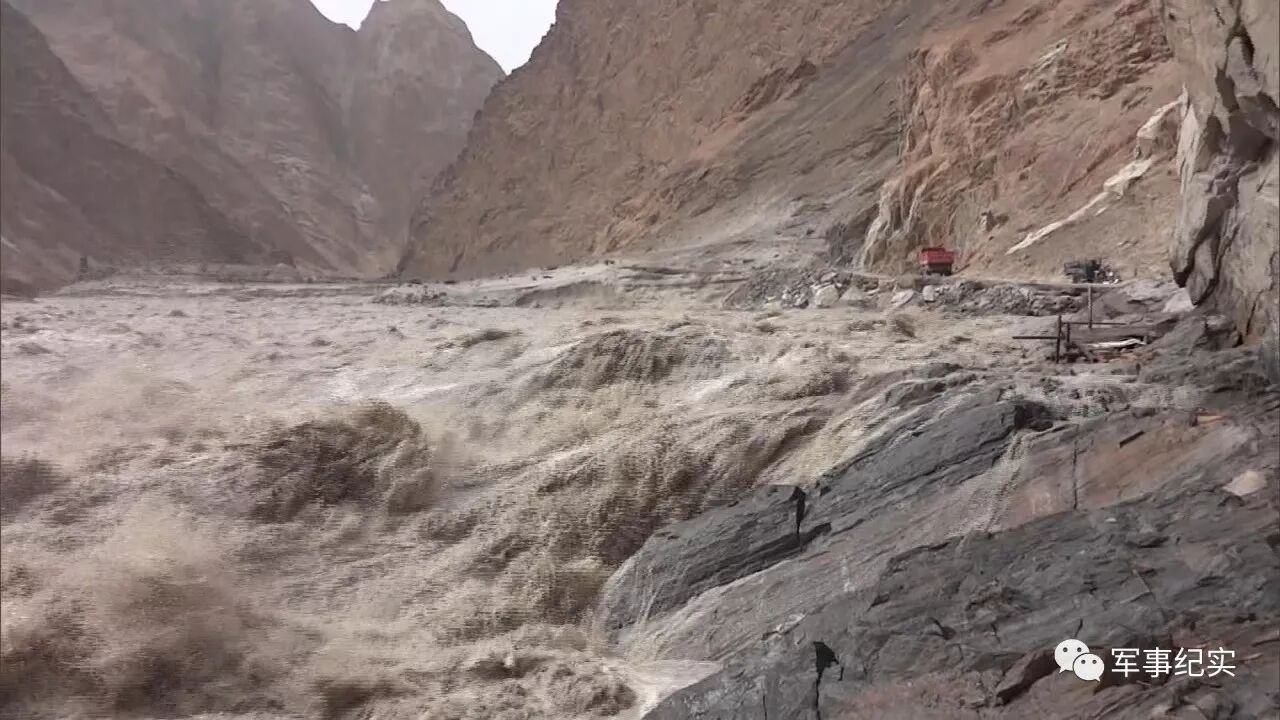 沿河的简易公路有些已被冲毁,