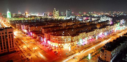 元宵夜,塞外草原明珠通辽市万人空巷,少男少女、老人小孩尽出行走春阳,处处张灯结彩,人流如潮,满城灯火辉煌: