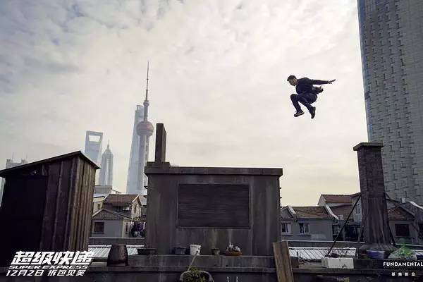 上海弄堂的场景设定非常有意思,一方面它有着周星驰喜剧中小市民的人气,一方面它体现了中国当代拥堵的生活环境。《超级快递》中第一次展示上海弄堂是陈赫骑着摩托车一路过关斩将,潇洒穿越市井人群。第二次展示陈赫原以为没有人比他更熟悉这里的人文地形,依旧骑着摩托车过关斩将,孰不知跑酷运动才是更亲近市井的动作模式。什么能比得上自中国古代就开始牛逼的“飞檐走壁”。在上海的老弄堂中,大卫贝尔展示了代表世界顶级水准的跑酷技术,帅到炸裂的动作身影呈现出燃爆刺激的动作大片质感。