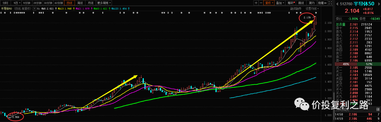 也就是说,买入ETF基金不会让你能跑赢行业内最牛的龙头的涨幅比例,但是也不会是最差的收益,获取中等或者中上等的板块涨幅是一定可以实现的。同时也会让自己摆脱拿不住牛股的尴尬,当然具体买入的时候也是需要一定的前瞻性的,另外也需要耐性。