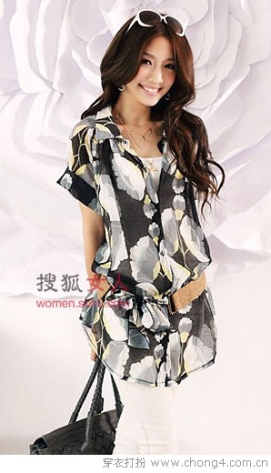 05 难得一见的素雅印花简洁款式衬衫设计,布料上的微透直纹让整件美衣清爽却不单调。略长的款式搭配长裤或短裙都是不错的选择。