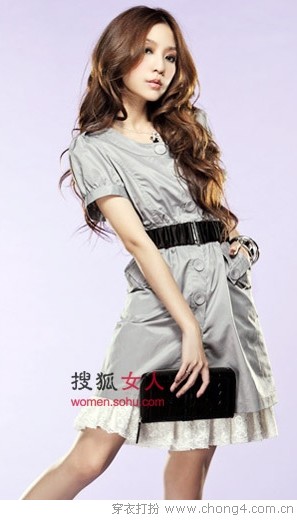 02 浅灰风衣式连衣裙,蕾丝装饰的下摆,让人感觉清丽高雅,抽褶是全身亮点,配合长长卷发,更散发淑女气质,塑造清纯伊人的美妙形象。