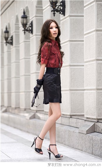 05 最基本的衬衫与西裙的搭配上添加一款比以往的腰封要增加2~3公分的宽度的腰带,松紧带设计把腰腹部小赘肉紧裹。富有细节设计的绸缎面西裙在你的干练中加注一丝丝的甜美。