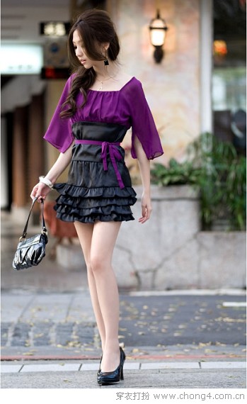 04 将原本上衣与裙装的搭线提升到胸线下围,在视觉上明显提升你的身材比例,而在腰封间系一条与上衣同样的细腰带使你魅力十足。