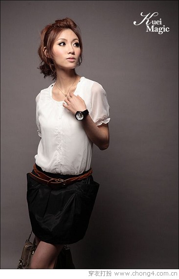 透视效果的衬衫也很适合OL上班的打扮哦,百搭的衬衫质料轻柔,穿起来很舒心,下半身搭配的桶状半截裙,剪裁有点可爱feel,不过腿粗的mm要留意,小心把你的缺点藏起来哦!