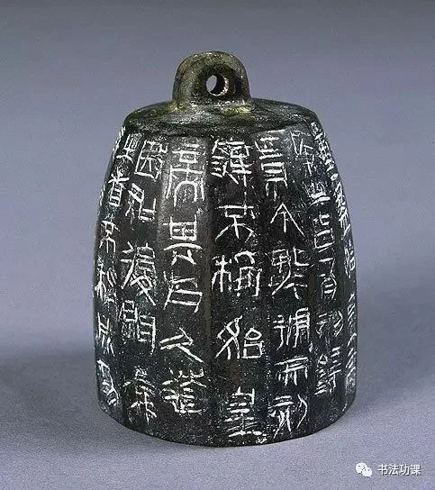 八棱体,空腔平底,平面中部有一道横梁。每行铭文有分隔阴线。