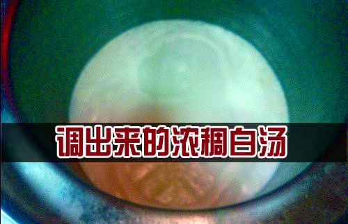 7月26日早上,记者发现操作台上两个人正在挤一大包淡黄色的膏体,上面写着味千汤料包的字样。中午,记者看到一位女孩在搅拌一盆汤,本来颜色很淡,可记者转身去送了个菜的工夫,再回来一看,汤的颜色已经发白了。这是不是就是传说中的浓缩包呢?下午,记者找机会溜进了厨房,看到一个金属桶里已经盛满了乳白色的汤底,这就是味千拉面的经典汤底。