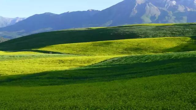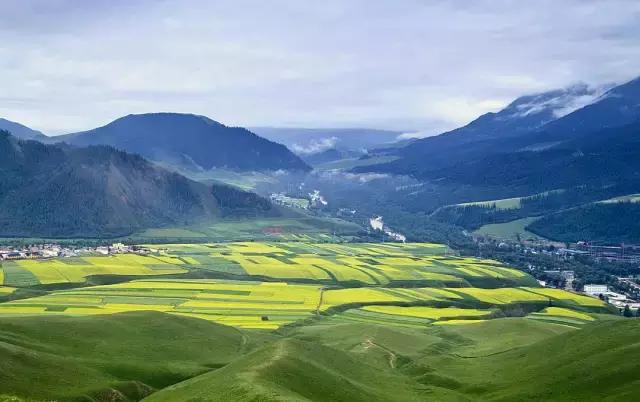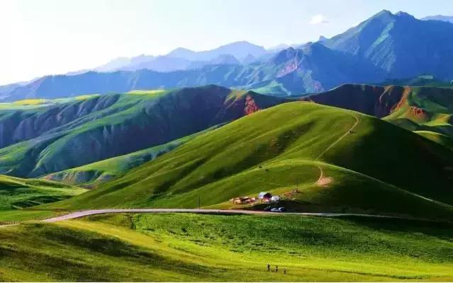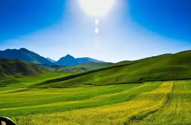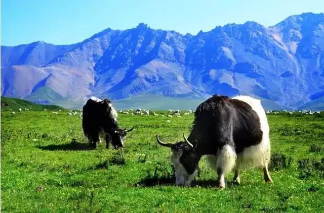 背面是连绵起伏的祁连山,山脚下滔滔八宝河