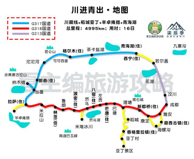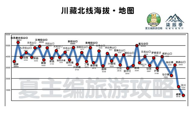 由于人们首次入藏几乎都会选择风景更好、海拔更低的318川藏南线,因此本篇主要介绍南线的一路海拔。
