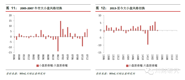 六:大小盘的风格上本轮牛市和2005-2007年牛市的节奏几乎一致。值得启发的是530调整以后风格上进入了大盘的风格。