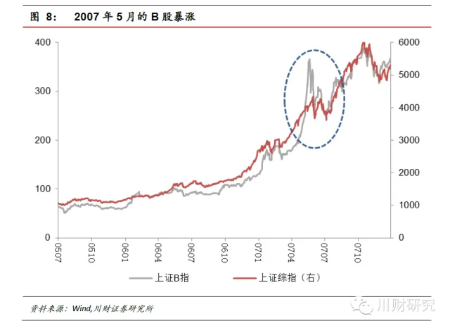 四:2007年也发生过B股集体涨停暴涨的情况,值得启发的是B股在530之前先于A股见顶部。