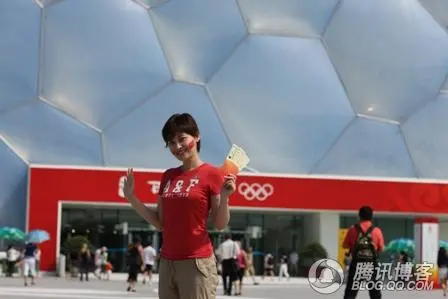 张峻宁在水立方为奥运健儿加油