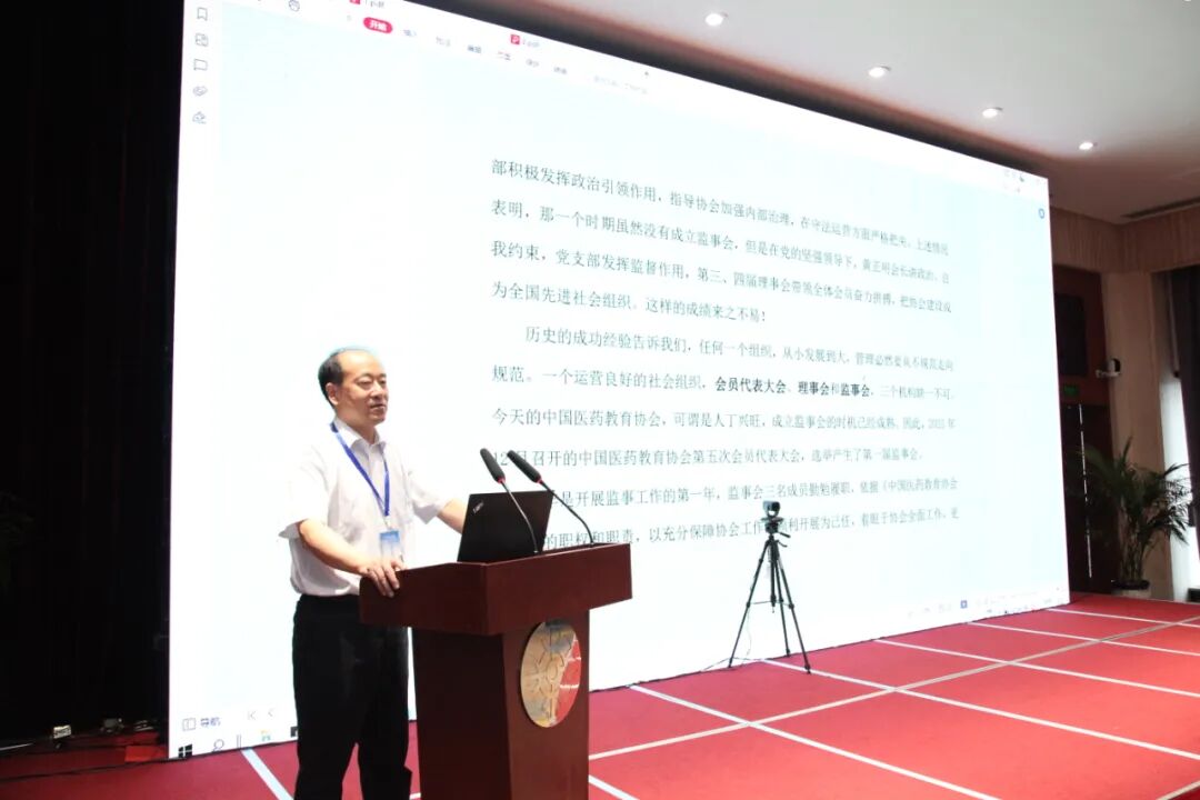 第五,中国医药教育协会监事长于福向大会作了《中国医药教育协会监事会2022年上半年度监事会工作报告》,并提请常务理事会审议。