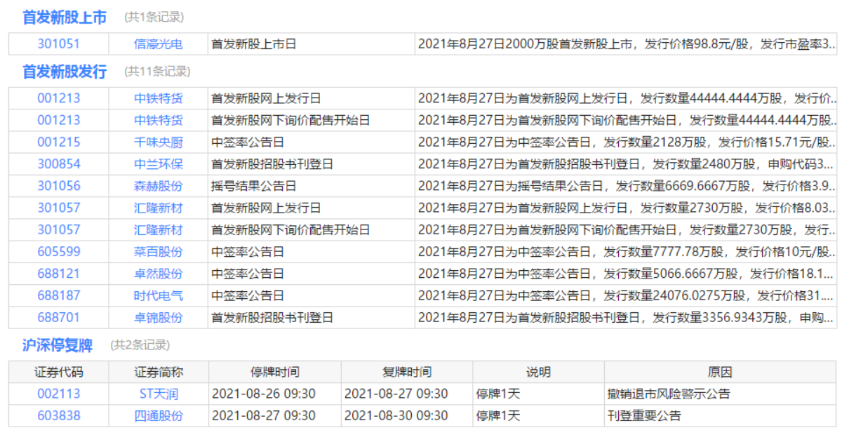 今日上市、申购、停复牌、特别处理、限售解禁等提醒:
