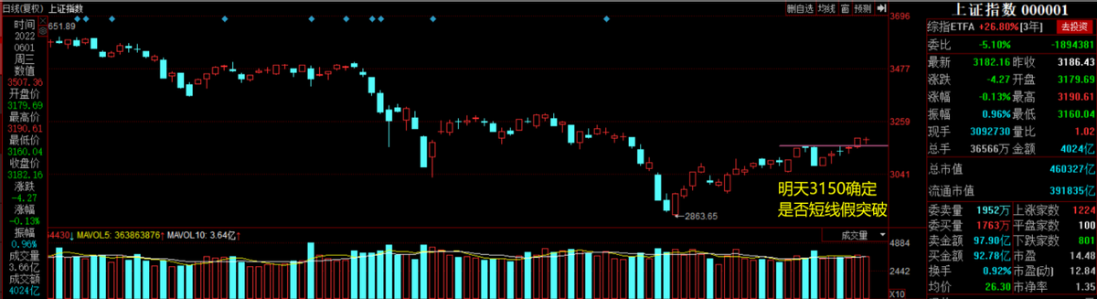 6月2日(周四)关键点:沪指3150。