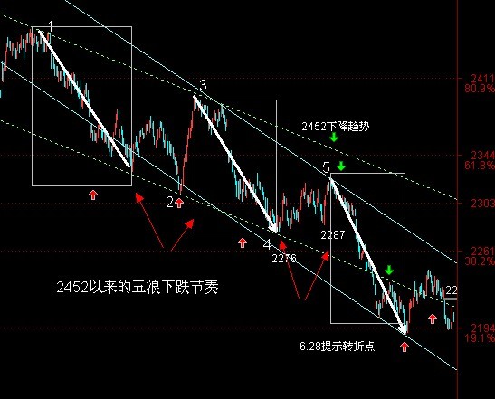 起至周二的冲高回落,是我在周末博文《如期探底大涨,周一如何操作》分析的,本周继涨须放量突破并站稳2252短压区,否则短线将二度回荡做小双底,然后再向上反弹。实际上半周反弹恰恰受阻与2252压力区反压,未能形成区间的突破,因此,这两天回落成为必然过程,周二高点我们提示获利减仓的原因及来自与此。