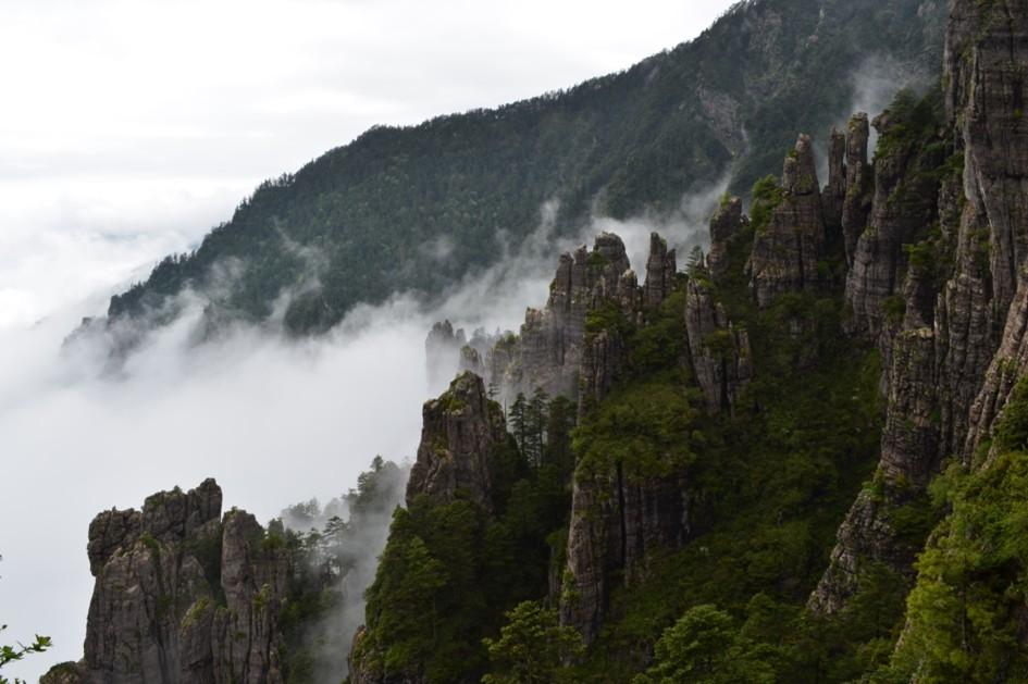 2005年我游览了神农架风景区,神农架国家级森林及野生动物类型自然保护区,位于湖北省西部边陲,东与湖北省保康县接壤,西与重庆市巫山县毗邻,南依兴山县、巴东县而濒三峡,北倚房县、竹山县且近武当山。是典型的构造地貌生态综合型地质公园,公园总面积1022.72平方公里。由五个园区组成,分别为神农顶园区、官门山园区、天燕园区、大九湖园区和老君山园区。2013年9月9日,神农架被认证为世界地质公园。神农架据传是华夏始祖、神农炎帝在此搭架采药、疗民疾矢的地方。神农炎帝在此“架木为梯,以助攀援”,“架木为屋,以避风雨”,最后“架木为坛,跨鹤升天”,故得名神农架。我们经宜昌出发,驱车从兴山县进入神农架林区木鱼镇。而后乘车前往神农顶,首先看到的景点就是神农谷。神农谷地处神农架南北气流过往通道,气象瞬息万变,谷底石林丛生,云雾变幻莫测,实乃大自然的鬼斧神工。我们走上台阶时,正好看到雾气渐渐消散,原本若隐若现的谷底此刻揭开了神秘的面纱,无比清晰地呈现在眼前。听到导游讲,台湾导演侯孝贤拍摄电影《刺客聂隐娘》时,曾在这里取景,为了等到云开雾散的那一刻,整整等了一天时间。真是来得早不如来得巧啊。“神农谷”海拔高程为2820米,从观景台至谷底落差达400多米。神农谷处于神农架群石槽河组白云岩出露区,白云岩形成于距今12-10亿年。由于强烈的挤压和褶皱,高角度裂隙十分发育。流水沿裂隙侵蚀、溶蚀,雕塑出了今天的奇峰秀谷,丛生石林。为了使游客能尽兴地观赏这神奇的景观,公园特别设计修建了一条4.4公里长的步行栈道。