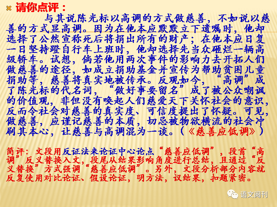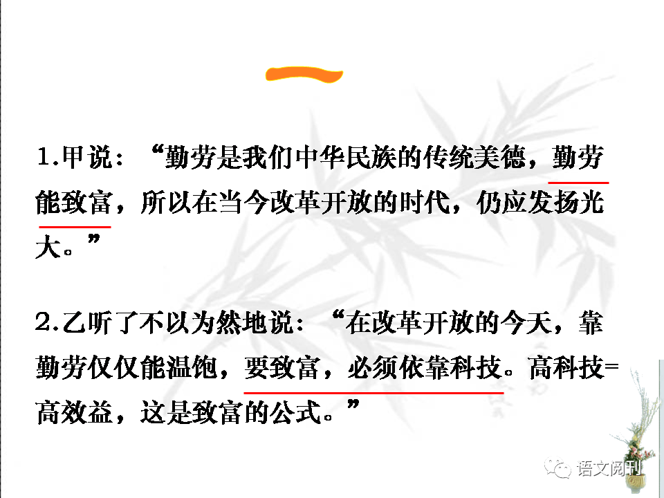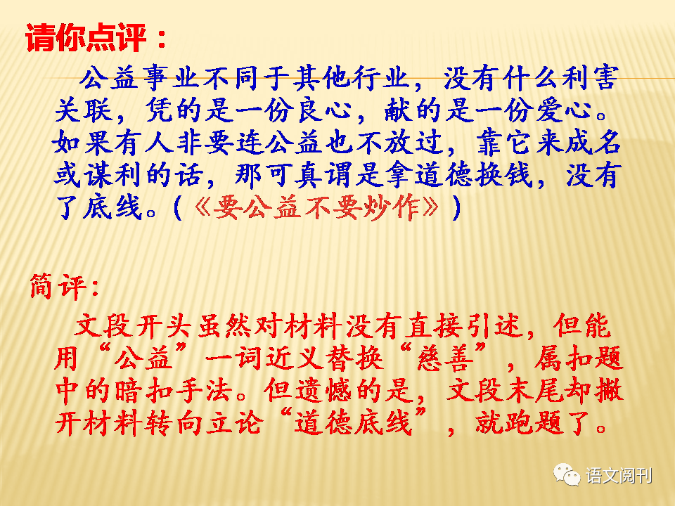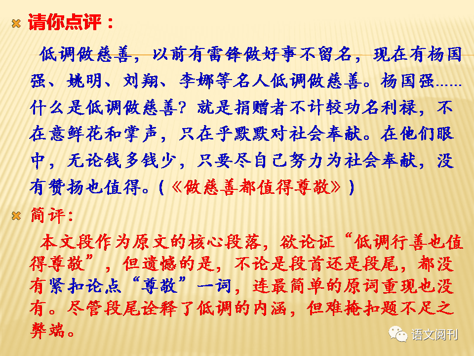 点评:先说明特定背景下,“金钱效率论”的合理性,进而引出更高的立论角度。
