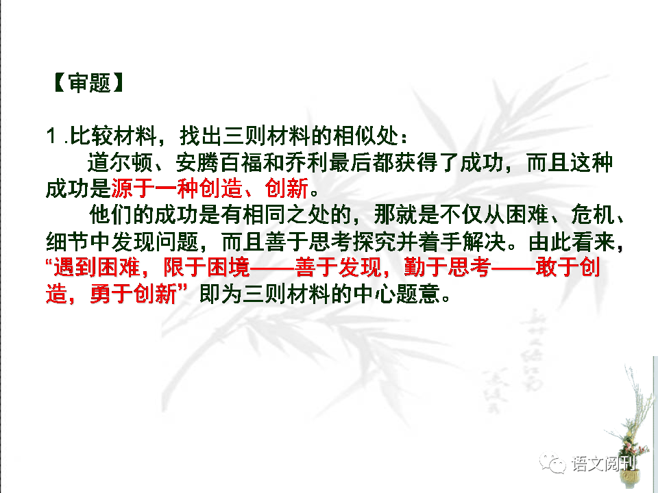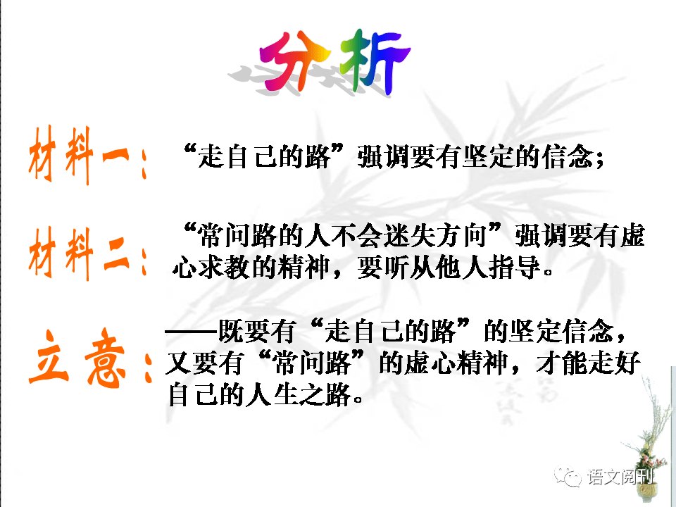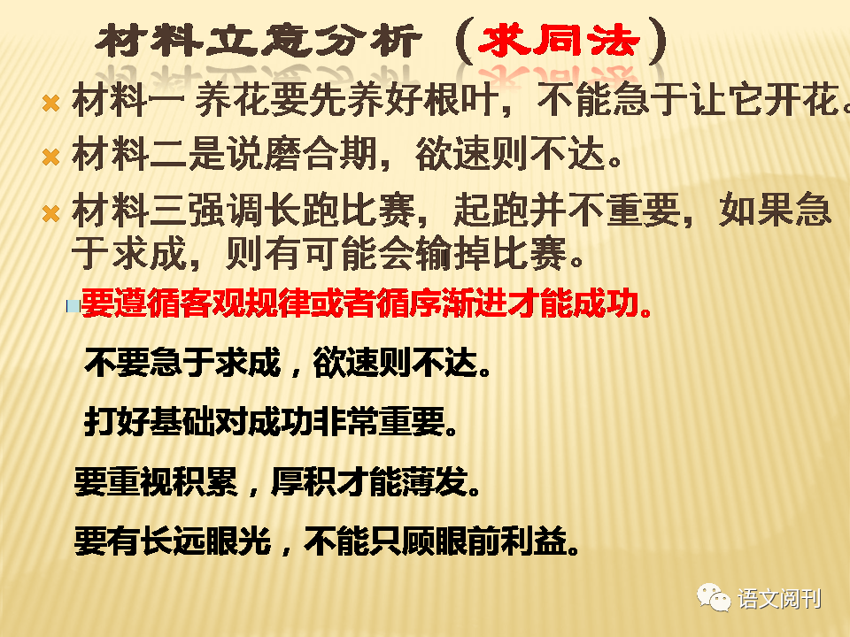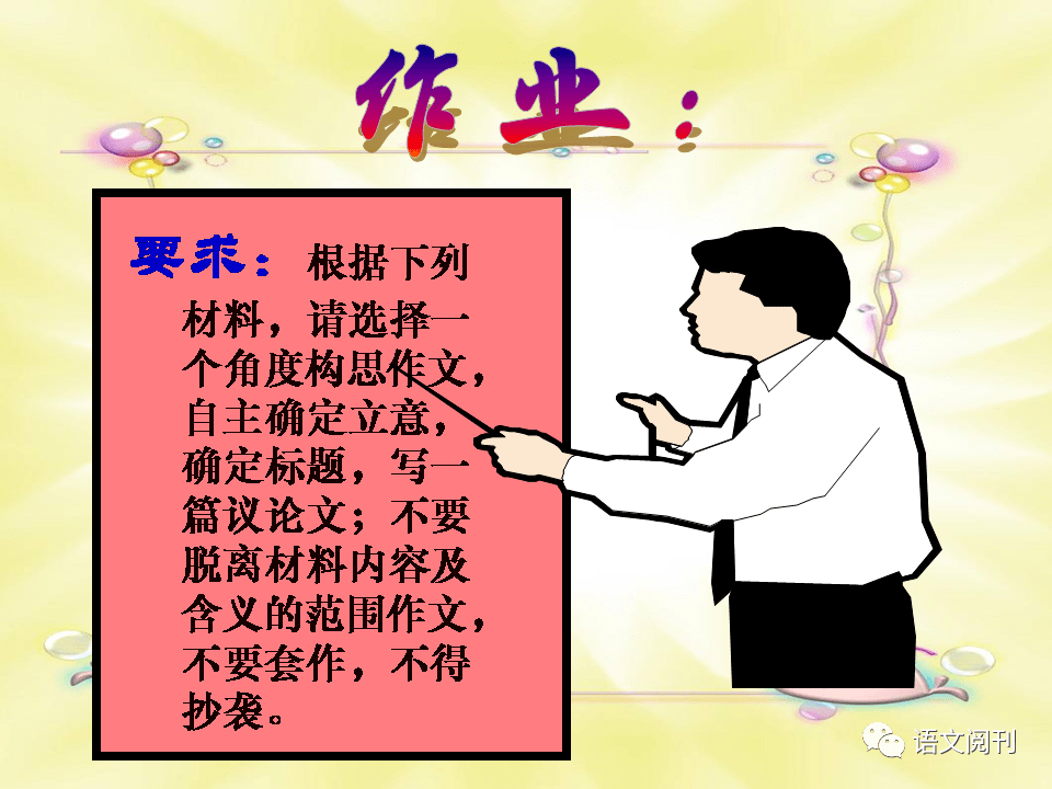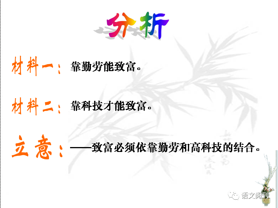 5.发问法:文章开头针对所给材料提出一个问题,再回答问题,即得到论点。