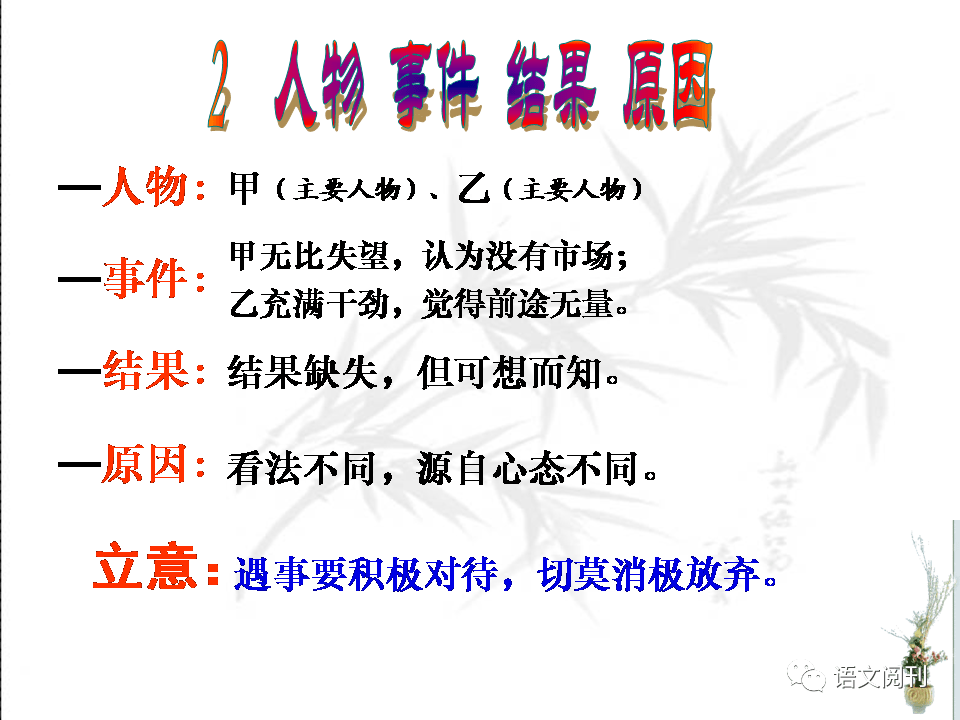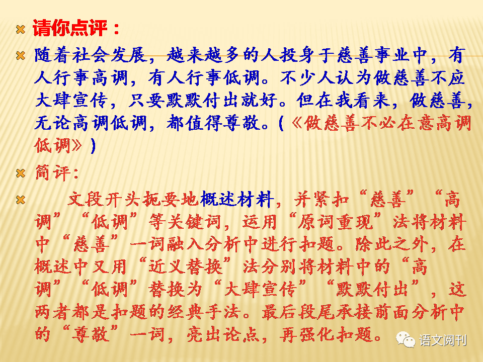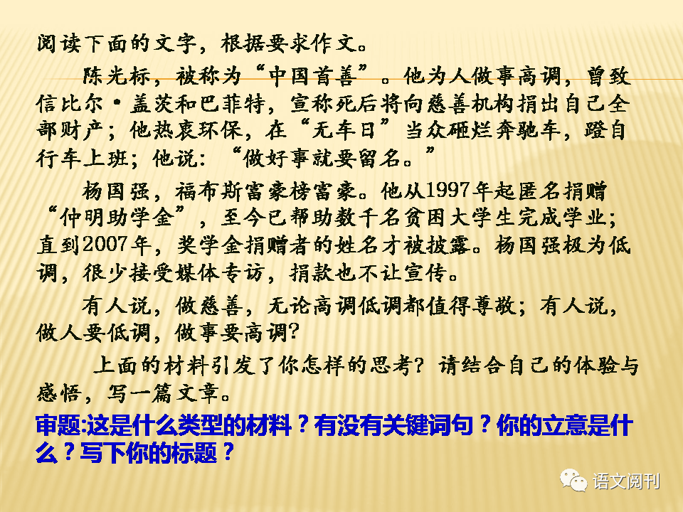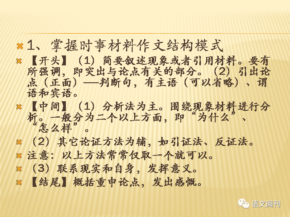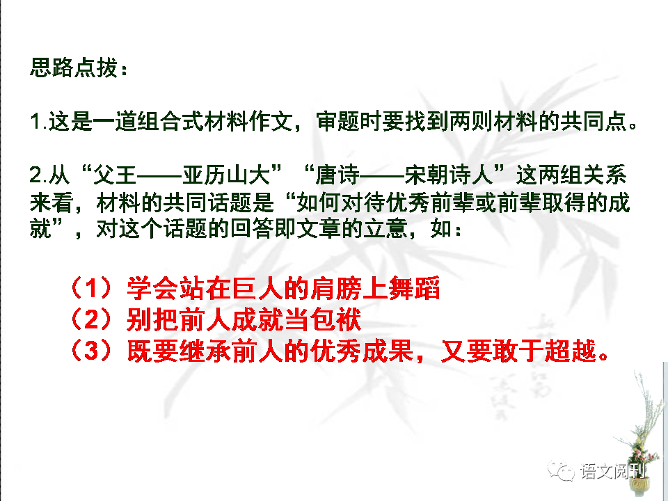 5.发问法:文章开头针对所给材料提出一个问题,再回答问题,即得到论点。