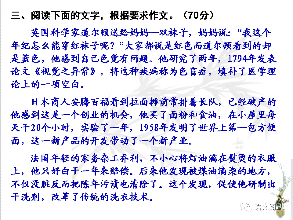 课堂训练: 2018年高考全国III卷阅读下面的材料,根据要求写作。(60分)