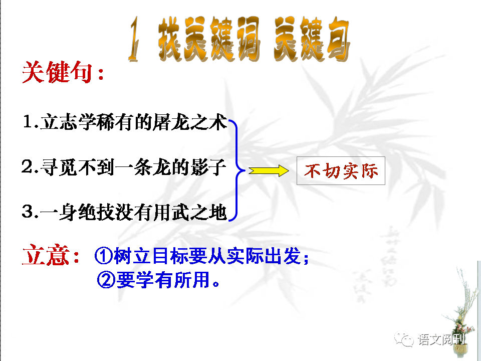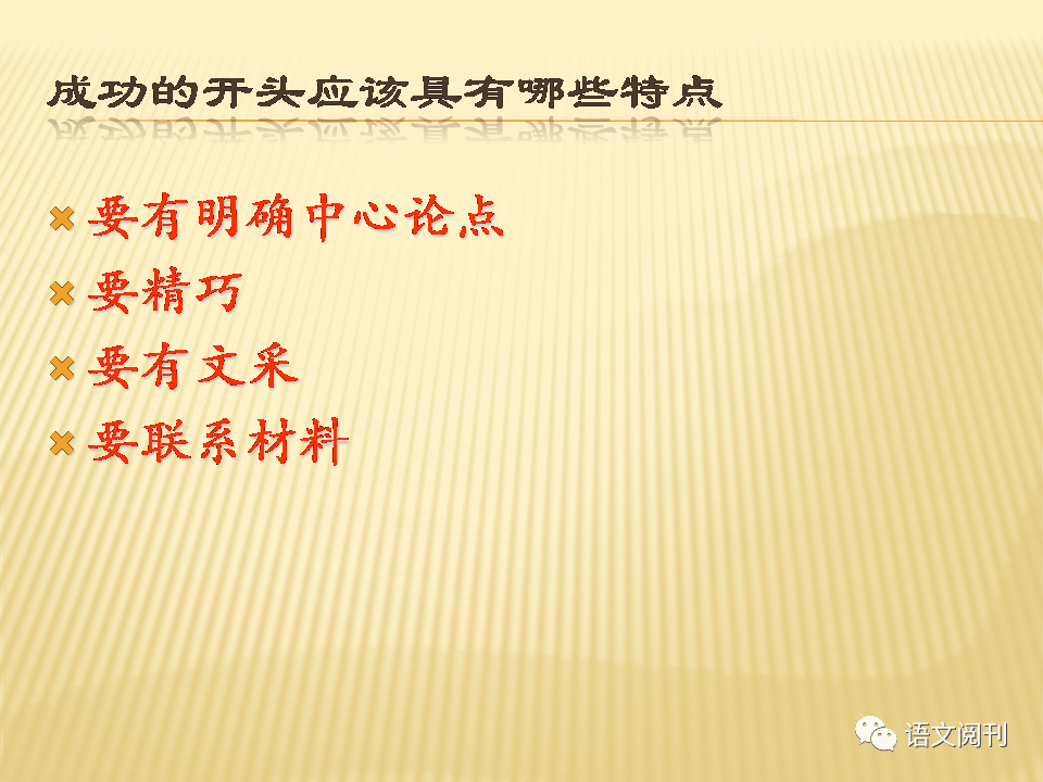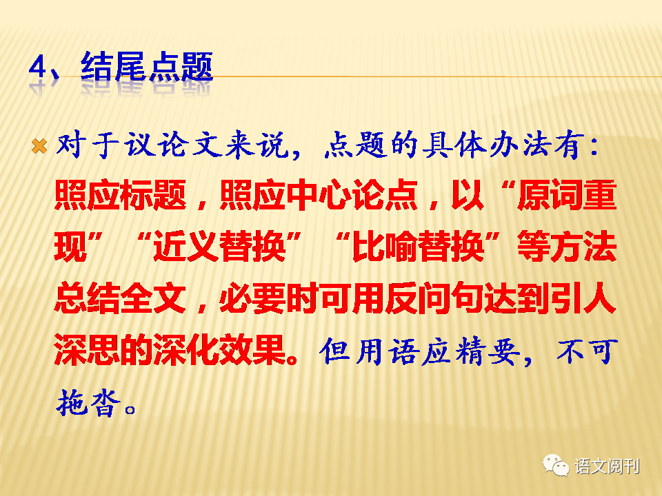 3.解说法:文章的开头阐释关键概念等,引出论题,再点出主旨。