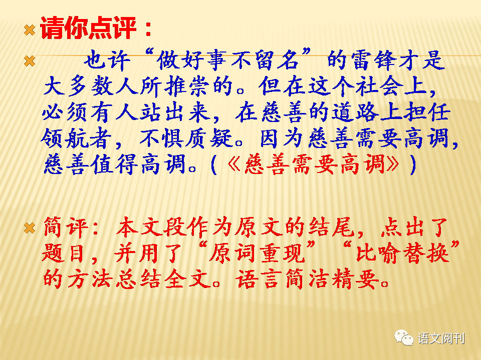 6.质疑法:文章开头就某个问题提出质疑、商榷、挑战等。然后点出作者的观点。