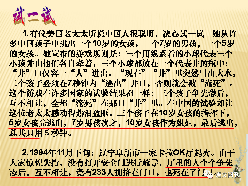 点评:引用孟子的名言,进而巧妙地叙说材料,引出话题。