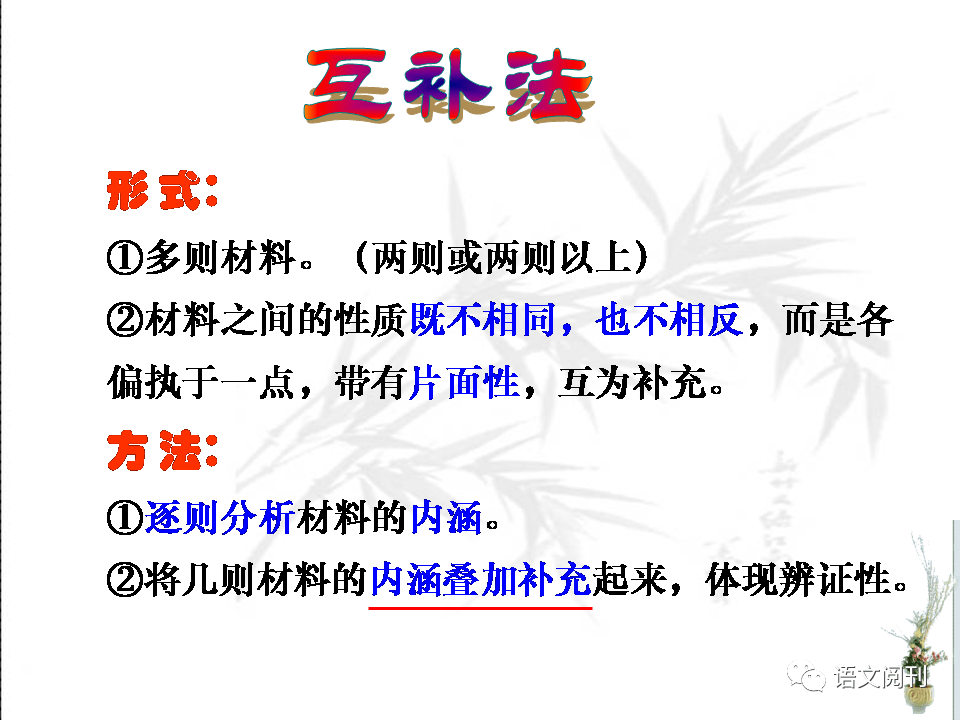 7.让步法:文章开头先承认或认可对方(材料)观点中合情合理的部分,然后提出作者的相反或相对的观点。