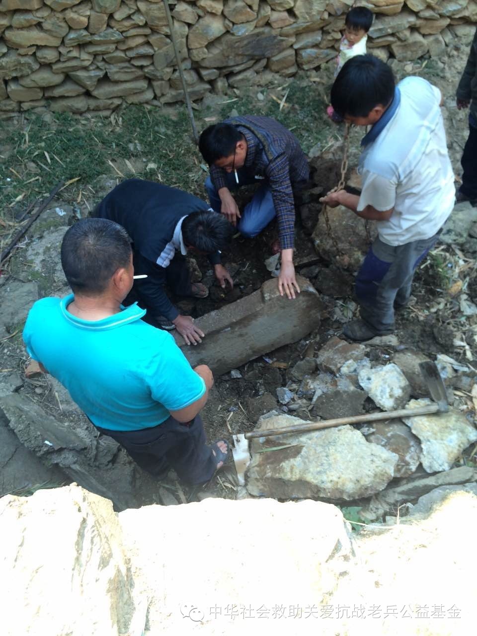 今天下午,牺牲于松山战役的郭维连长的墓碑在云南龙陵松山脚下腊猛村的一口水井中出土,重见天日,碑记:浩气永存 阵亡连长郭君维之墓
