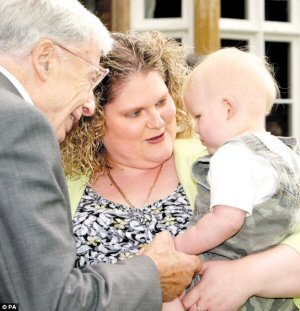 资料图:世界上第一个“试管婴儿”路易丝与她的儿子卡梅伦,左为“试管婴儿之父”罗伯特爱德华兹教授。