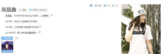 百度搜索高磊鑫,可能是薛之谦太红的原因,她的资料只有短短几行,薛之谦的前妻,于2015年9月离婚。
