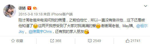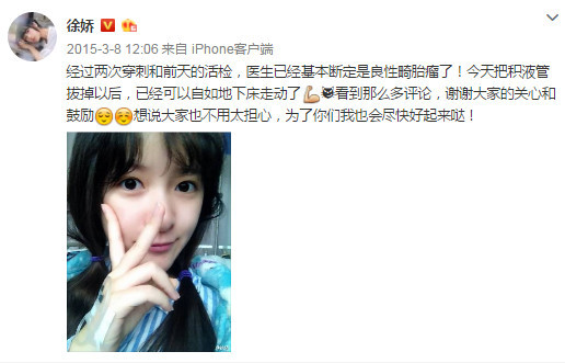 在治愈期间,徐娇还是每天给大家发微博,正能量满满。