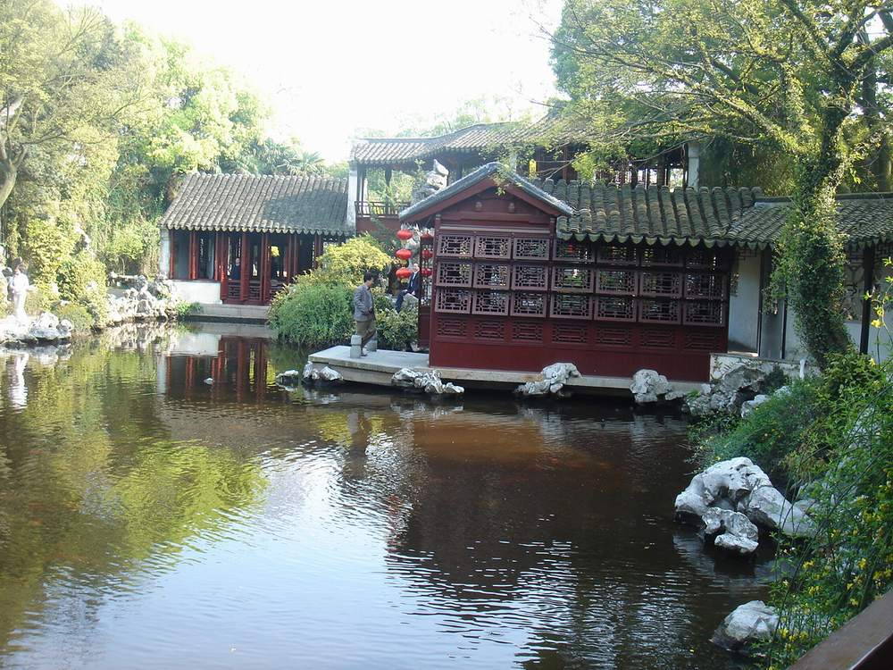 退思草堂古朴素雅,稳重气派,点明了园之主题。沿曲径南行,至菰雨生凉轩。据说此轩还有一绝,轩底原有三条水道,荷池碧水循环其间,故轩内阴湿凉爽,每逢盛夏酷暑,于此剖瓜赏荷,热渴尽消。自菰雨生凉轩穿过假山洞,沿石级盘旋而上,便来到堪称江南园林一绝的天桥,视眼豁然开朗。天桥,上为桥,下为廊,模似阿房宫复道。横空出世,飞越山巅,连接菰雨生凉轩,与辛台为一体。天桥前后贯通,八面来风,炎热酷暑时,到这里消暑纳凉,神清气爽。但令人遗憾的是,不知什么原因,这里的水呈红色,问及服务员都称不知原委。可我知道,这一定是有污染源的,我又一次为同里的水担忧了。水不能保护,同里的美景还能维持多久呢?
