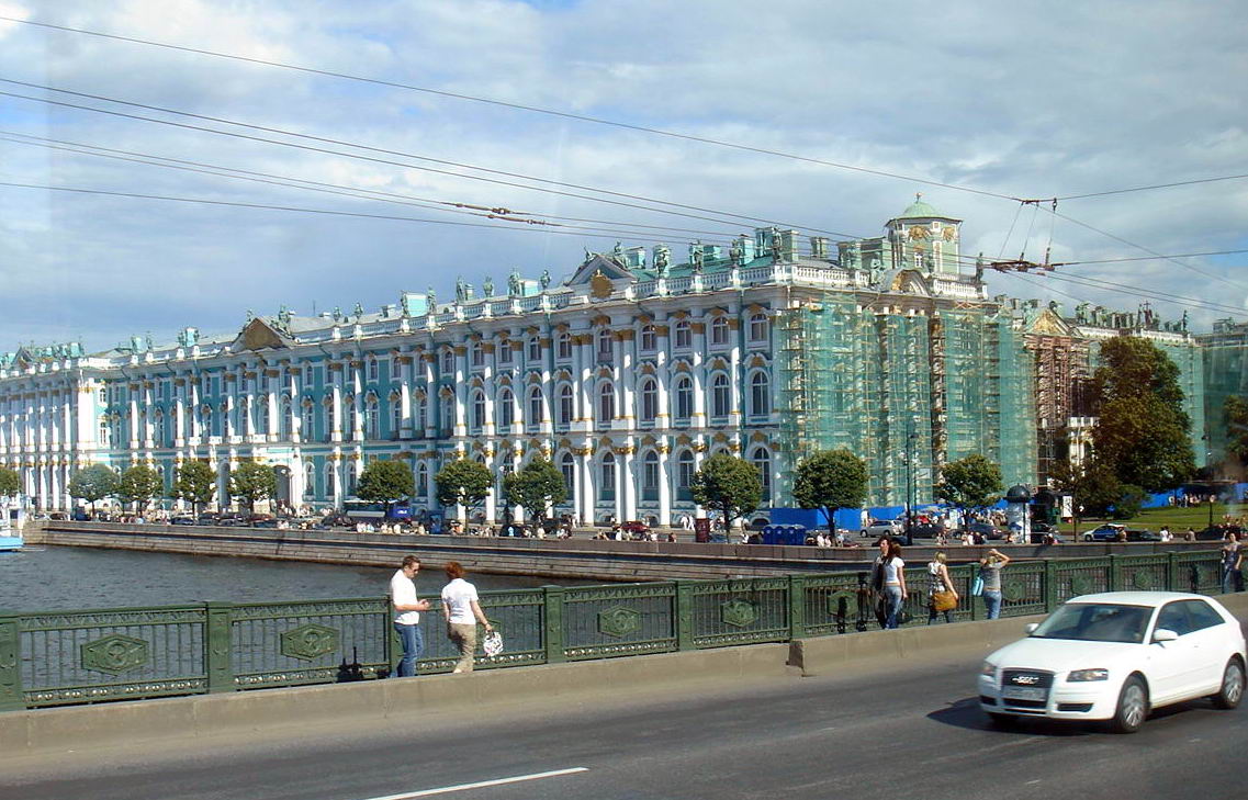 我们是从莫斯科回来以后参观的冬宫,为了完整的记述彼得堡,我不得不打乱了时间的顺序。我们于28日从莫斯科赶到彼得堡,由于火车票紧张,我们是乘坐夜里3点的那班,到彼得堡已经是中午了。午饭后,我们就来到了冬宫。